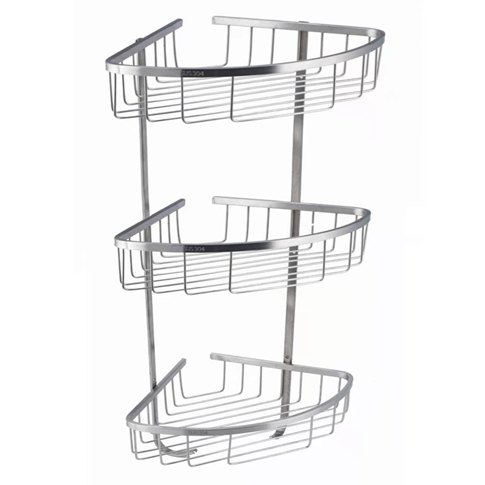 رف حمام زاوية ثلاث لتخزين الادوات سلة معدنية زاوية بارتفاع مزدوج. ملحق أساسي في الحمام يتميز بتصميم قوي وعملي يمنع تراكم الشوائب كما ان هذا المنتج مقاوم للتآكل و الصدأ وتغير اللون